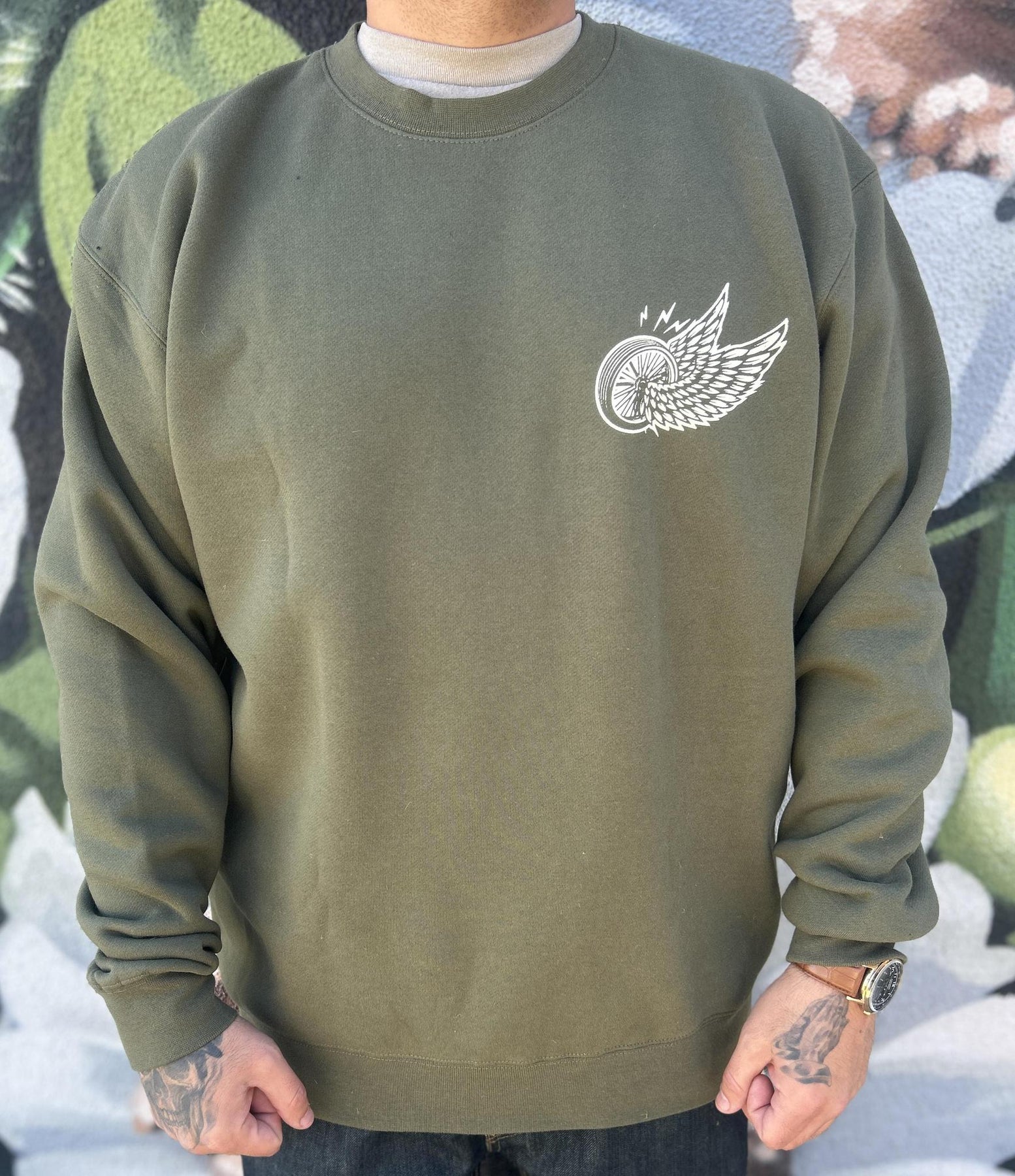 Men's Olive Wing Wheel Crew Neck - Espinoza's Leather