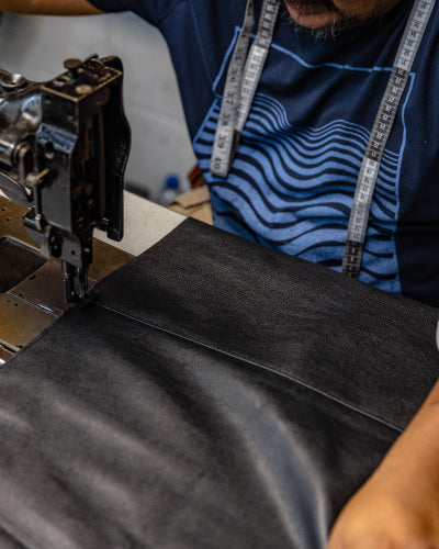 • UV coated, full grain, 1.5 mm thick black cowhide exterior collar, shoulder piping, torso, chest pocket flaps, lower pocket lips, and waistband