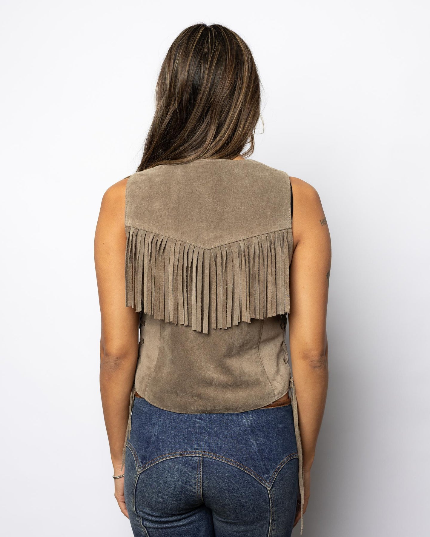 Ladies Taupe Rough Out Fringe Vest